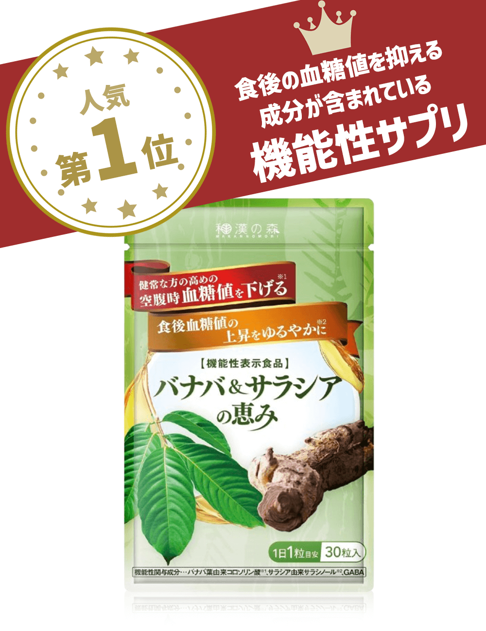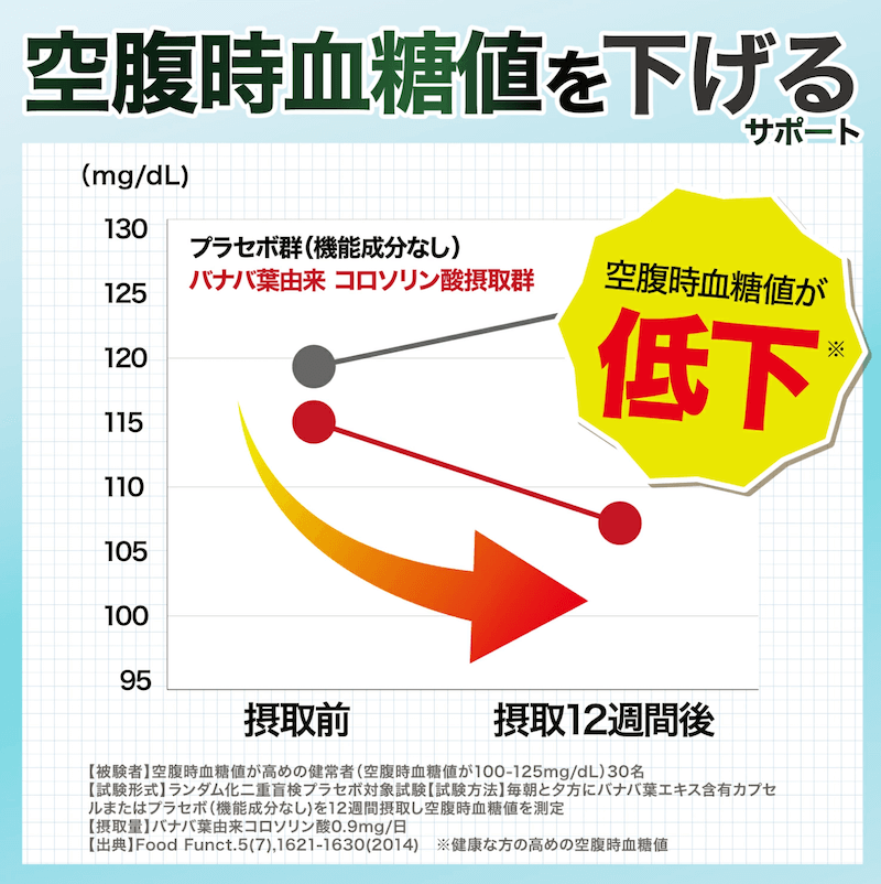 そしてバナバ葉由来コロソリン酸は、空腹時の血糖値を低下させるサポート機能が業界トップクラスなんです。