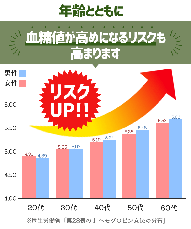 血糖値は加齢に伴い上昇する危険性がある