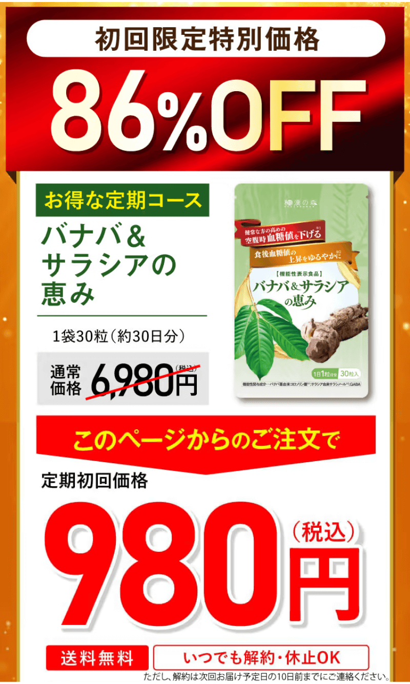 この機会に、バナバ&サラシアの恵みで健康リスクを減らして、活力ある充実した日々を取り戻しましょう!